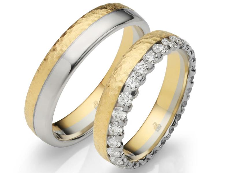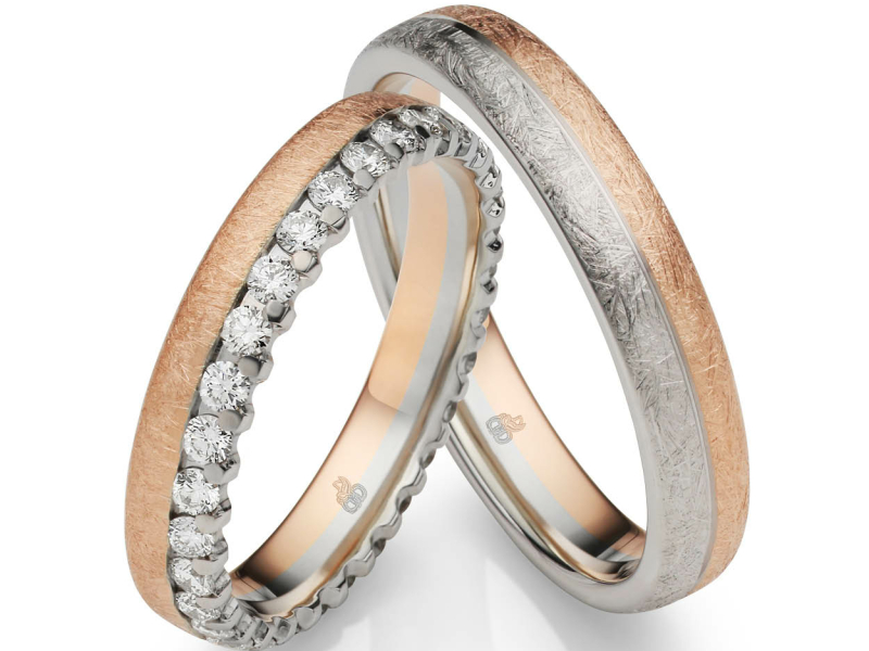 Eén blik is genoeg om te zien wat deze modellen kenmerkt - veel diamanten die van elke trouwring een echte blikvanger maken. de extravagante kroonzetting is als een eerbetoon aan de liefde en overtuigt met een koninklijk ontwerp.